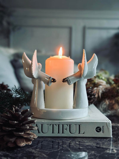Ljusstake med änglar - Vit porslin