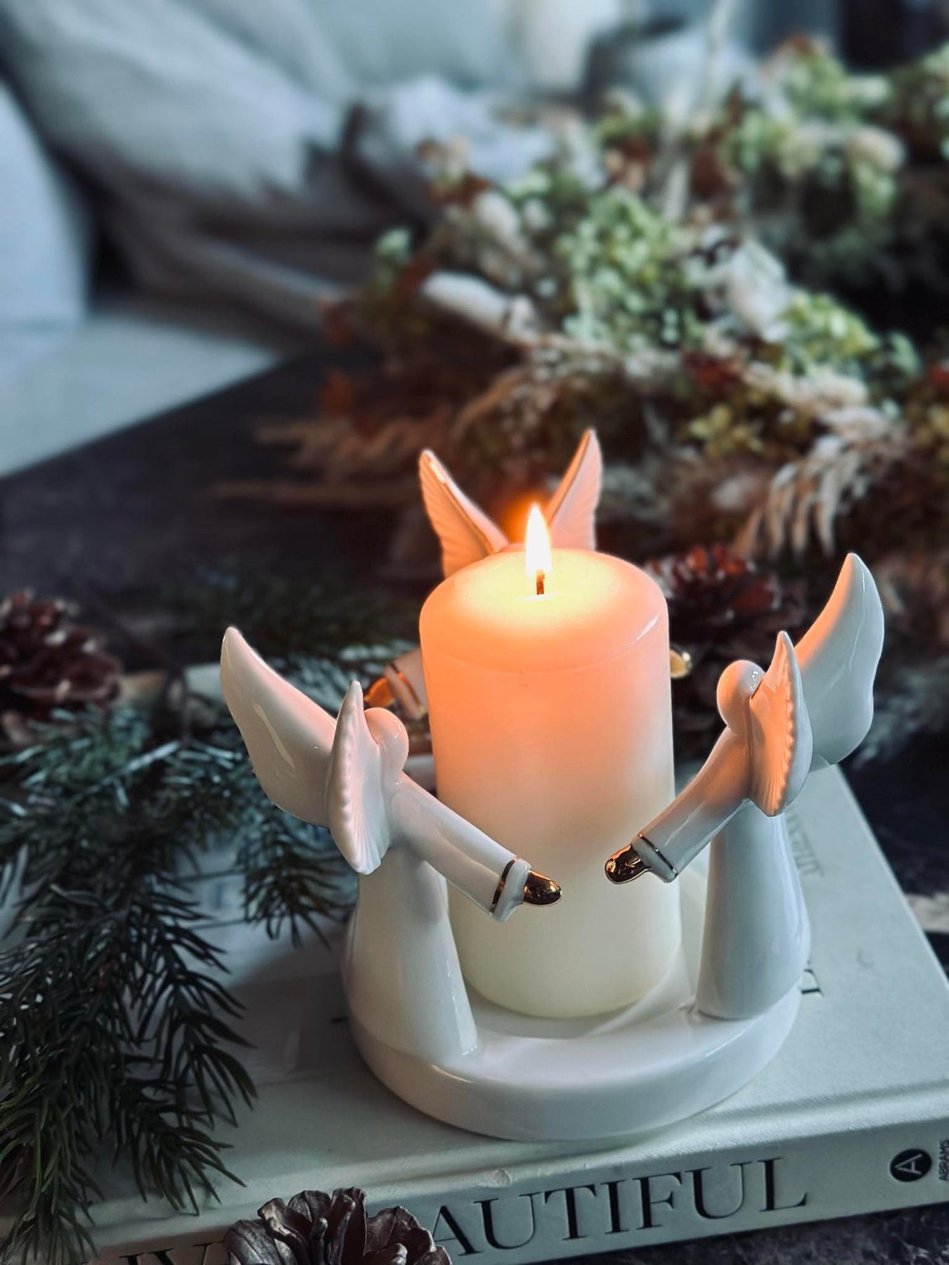 • Ängelljusstaken är tillverkad av äkta porslin